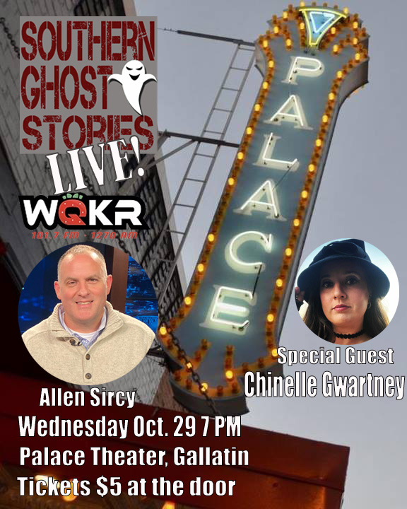 Allen Sircy is bringing his radio show/podcast, “Southern Ghost Stories: Live” to the Palace Theater in Gallatin, Tennessee on October 29, 2025 at 7 pm. Tickets are $5 at the door. All funds will go back to the historic theater. Allen will be joined by paranormal investigator Chinelle Gwartney. The pair will talk about the haunted history of Tennessee and about investigations they have been apart of.